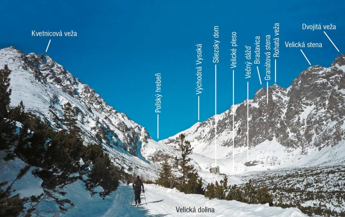 Populárny a často vyhľadávaný cieľ mnohých návštevníkov Vysokých Tatier Velická dolina je dlhá 6 km, leží pod mohutnými zrázmi najvyššieho vrcholu Vysokých Tatier a aj najvyššieho vrcholu Karpatského oblúka Gerlachovského štítu (2 655 m). Velická dolina má tri časti. Dolná, zalesnená a málo výrazná, siaha od úpätia Tatier až do výšky 1 200 m. Prostredná časť, dole zarastená lesom a vyššie kosodrevinou, zasahuje pod Velické pleso (1 663 m). Turisticky je zaujímavá len horná časť doliny. Z pravej časti, bezprostredne nad magistrálou vybieha hrebeň...